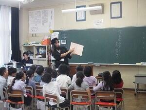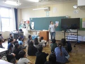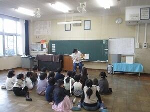 2年生が、西武鉄道の方を指導者として招聘し、線路の保線機械とそれを使用しての詳しい作業について学習しました。学区に車両基地があることで、身近に感じる児童が多くいました。一人一人が興味を持ってお話を聞いていました。