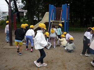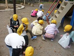 1年生が生活科の授業で、近隣の公園に「秋さがし」に出かけました。落ち葉やどんぐりなど、秋を感じさせるものを採取しました。