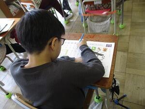2年生が、一心不乱に漢字の練習をしています。「2年生で習った漢字は、正確に覚えよう」という姿勢が、語らずとも伝わってきました。