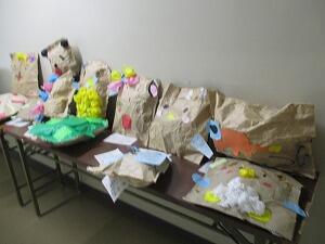 2年生の図画工作「ぎゅっとしたい!わたしのお友だち」の授業です。ふくろの形や色、材料を工夫して、私だけのお友だちをつくりました。