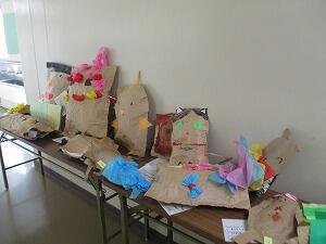 4年生の教室前廊下には、図画工作で制作した作品「本を開くとお気に入りの場面」が展示されています。どの作品も、児童一人一人の思いが感じられた作品でした。