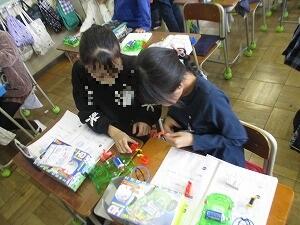 5年生の理科「電流と電磁石」の授業です。電磁石にはどのような性質があるのか、友達同士で実験しました。