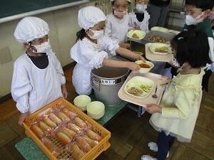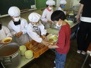 今日は、1年生の給食開始日です。初めての当番活動や配膳の仕方を全体で確認し、上手にできました。先生方の教え方もわかりやすくて良かったです。