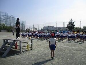 今朝は、今年度最初の体育朝会を実施しました。1年生が加わったことで、体育の授業の基本である「気をつけ」「前へならい」「休め」の姿勢を確認しました。また、体操隊形の開き方と戻り方も練習しました。5月31日(土)は、運動会があります。今から楽しみです。