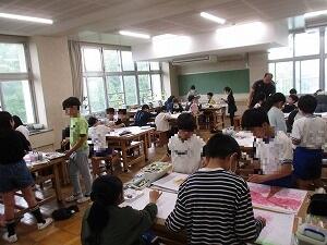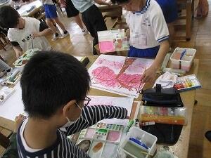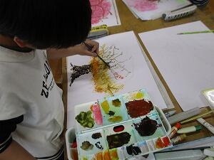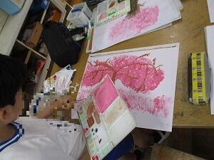 5年生の図画工作「季節を感じて」の授業です。今日は、色ぬりに入り始めた児童もいました。べたぬりはせずに、丁寧に色を塗る様子が見られました。