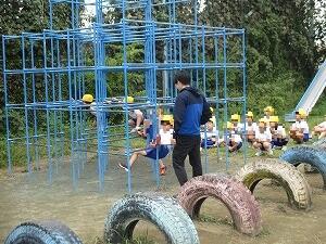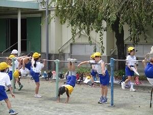 1年生体育の授業! 投稿: 校長 (09:28) 先週に行われた1年生の体育「鉄棒遊び」の授業です。慣れの運動として、遊具の登り坊やジャングルジムでの遊びを行い、主運動の鉄棒遊びをしました。慣れの運動では、互いに「がんばれー」の声援があり、とても微笑ましかったです。主運動の鉄棒遊びでは、「こうもり」「つばめ」などに挑戦しました。