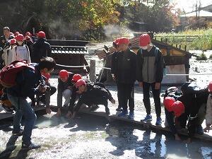 快晴の空の下で、6年生が修学旅行で栃木県日光市に出かけました。気温もさほど寒くなく、源泉見学の後に湯の湖畔でお弁当を食べました。朝早くからお弁当をつくってくださった保護者のみなさまのおかげで、子供たちは笑顔いっぱいでした。