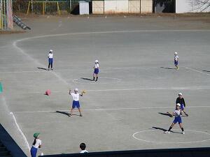 4年生の体育「Tボール」の授業です。男女協力し合いながら声を掛け合い、楽しそうに活動していました。