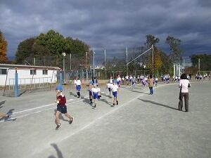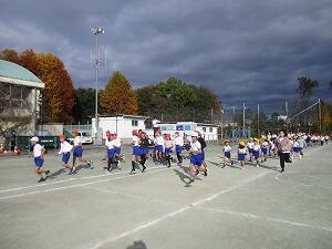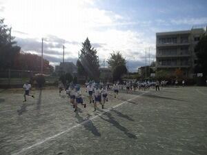 ランランタイムスタート! 投稿: 校長 (09:02) 今月の体育朝会は、全校一斉ランランタイムを実施しました。1・2・3年生が内側のトラックを、4・5・6年生は外側のトラックを走ります。4分間、自分のペースでそれぞれ走りますが、一人一人が自分のペースで走っていました。外の気温は少し低めでしたが、走り終わった後は体がポカポカでした。今日から、朝と20分休みは自主的なランランタイムの時間です。体力向上につなげてほしいです。