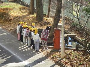 池に氷が! 投稿: 校長 (11:47) 1年生が、ひょうたん池に集まっています。朝気温が低かったため、池に氷が張っていました。安全指導として、担任が注意をしています。「氷が張っているからといって、足をのせないこと。前のめりになって、池の氷をのぞかないこと。」の説明に、子供たちはうなずきながら聞いていました。