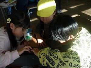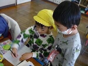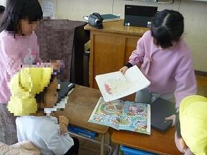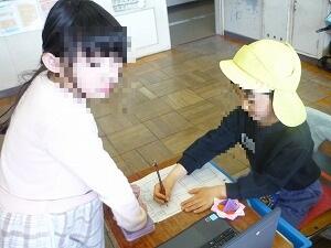 近隣の幼稚園と保育園の園児が、本校の1年生と交流をしに小学校に来ました。1年生は園児に、名前の書き方や数字をやさしく教えていました。