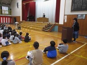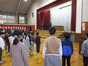 本日、令和7年度修了式を挙行いたしました。校歌を歌った後に各学年の代表者に修了証を渡しました。子供たちには、昨日実施された卒業式での6年生の態度がすばらしかったこと、在校生が新1年生のお手本となって温かく迎えてあげることについて話しました。