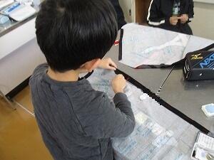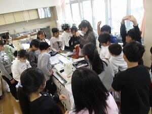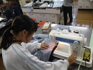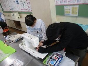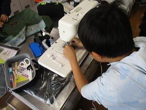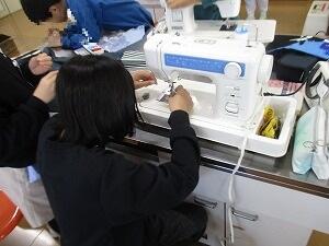 5年生が、家庭科の授業でエプロンづくりをしました。アイロンかけからしつけ縫いをし、ミシン縫いをします。一人一人が先生の説明をきちんと聞き、手順に従って進めていました。