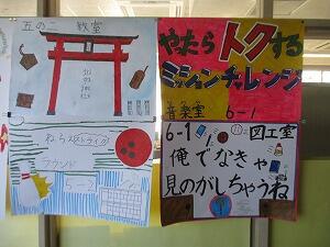 12月3日(水)の北中まつりに向けて、3年生以上が準備を進めています。それぞれのクラスの催し物に関するポスターが、職員室前に掲示されました。当日が楽しみです。